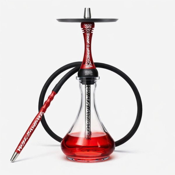 Стильный современный кальян в красно-чёрном исполнении, сочетающий эффектный дизайн и продуманную конструкцию. Прозрачная колба из толстого стекла с красным акцентом подчёркивает премиальный внешний вид, а металлическая шахта с декоративной гравировкой обеспечивает стабильную тягу и долговечность.