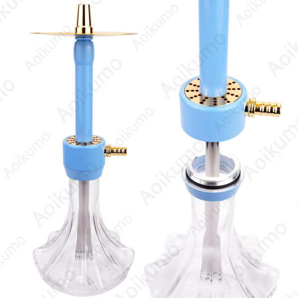 Стильный прозрачный кальян с золотыми металлическими аксессуарами. Мягкий желтый силиконовый шланг обеспечивает комфортное курение. Простая сборка, легко чистится.